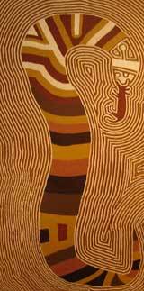 La figure récurrente des différents mythes est celle du «Grand serpent arc-en-ciel» qui, en se déplaçant, a laissé des traces de son passage (montagnes, vallées, rochers…).
