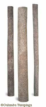 Les YOLNGU, qui peuplent la Terre d’Arnhem au nord-est de l’Australie, organisent de longues cérémonies funéraires sur plusieurs semaines. C’est à cette occasion qu’ils fabriquent ces totems, réceptacles cérémoniels destinés à recueillir les os des défunts, puis qui sont érigés à la fin des rituels.
