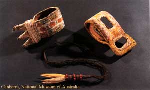 En ce qui concerne le Pukumani, les Tiwi confectionnent des paniers d’écorce qui seront brisés sur les poteaux, des bracelets et des objets décoratifs portés par les danseurs. Ils réalisent surtout de très remarquables poteaux en bois de fer sculptés et peints.