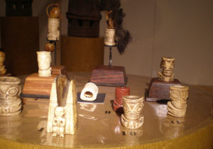 Il y a aussi ces petits objets extraordinaires que sont les ivi po’o, ornements de cheveux taillés dans l’os d’un ancêtre, sculptés en forme de tiki, présentés ci-dessous.