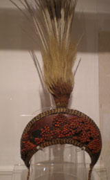 Des parures à faire tourner la tête : ce diadème orné de graines d’abrus et de plumes de phaéton mais encore une couronne en dents de dauphin et marsouin et en perles de verre, des bandeaux de nacre et d’écailles de tortues.