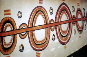 Il avait de fait remarqué que les enfants exécutaient des dessins sur le sable qu’ils ne réalisaient pas à l’école, plus occupés à reproduire des cow-boys ! C’est ainsi que Bardon encouragea les Anciens à peindre sur les murs de l’école.