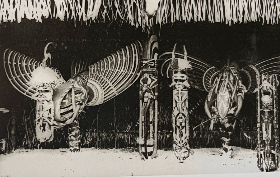 Photo 1 : Exposition de Malaggan , Nord de la Nouvelle-Irlande, photo d’Alfred Bühler, 1931, museum der Völkerkunde, Bâle.