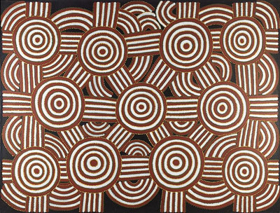 et Le rêve du paramèle Ewooda, Dave Ross Pwerle, Utopia, Acrylique sur toile, Coll. Musée des Confluences, Lyon
