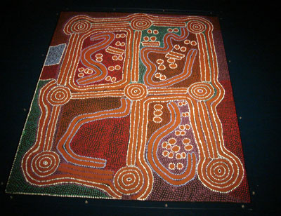Mais les objets ou les peintures du désert sont Les « cartes » de territoires identitaires et d’itinéraires totémiques en rapport avec le Rêve qui n’est pas seulement un mythe ancestral puisque réactualisé par le rite et toujours actif (espace à N dimensions dont le notre n’est que la projection comme dans la caverne de Platon)