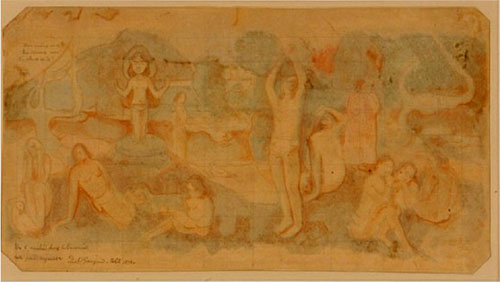 S’agit-il d’un dessin préparatoire à la grande toile de Gauguin : D’où venons-nous ? Que sommes-nous ? Où allons-nous ? réalisée pendant l’hiver 1897.