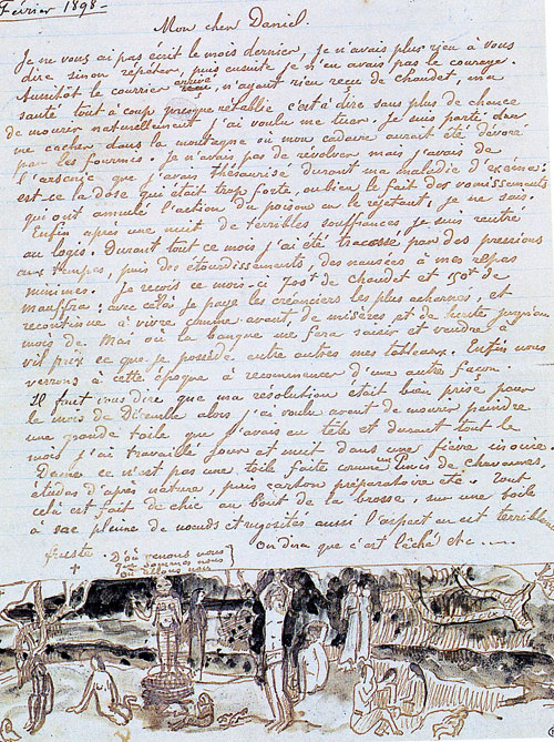 Photo 3 : Lettre illustrée à Daniel de Monfreid, © musée d’Orsay, conservée au département Arts Graphiques du musée du Louvre.