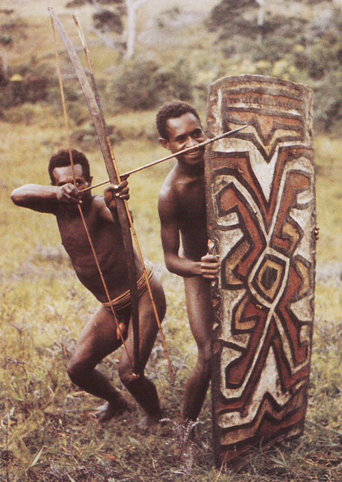 Formes et couleurs jouent sur ces boucliers mélanésiens.