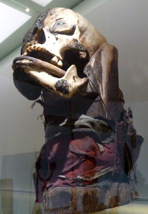 Pourtant, il en est de plus difficile d’approche car la tête est constituée d’un véritable crâne. Ces korwar sont-ils antérieurs au korwar de bois ? Dans tous les cas, le pouvoir de l’ancêtre représenté jouait un rôle de protection pour la famille qui le conservait.