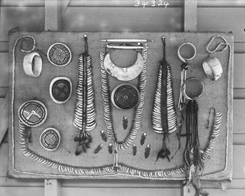 Ci-dessus, une présentation d’ornements que possèdait Dauncey dont beaucoup sont maintenant dans les collections de Plymouth. On ne sait pour quelle raison il choisit de vendre une grande partie de ses objets en 1909 puis en 1923 à Plymouth. On trouve cependant quelques objets dans d’autres musées britanniques mais surtout des notes, correspondances et photographies.