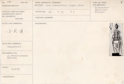 Photo 2 : Carte d’inventaire du charme de navigation de l’ Instituut voor Kulturele Anthropologie Van De R.K. Universiteit Nijmegen.