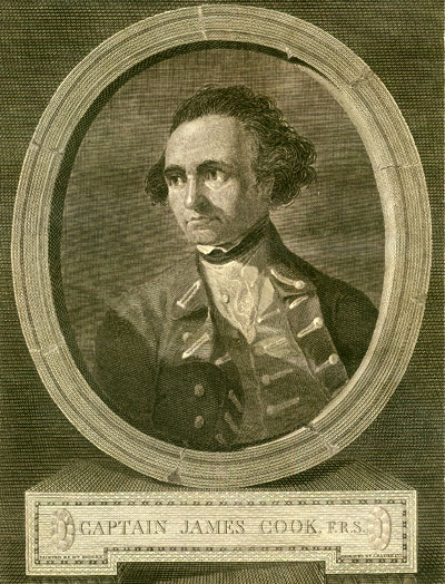 Photo 1 : Gravure de James Cook réalisée par James Basir à partir d’un portrait de 1777 de William Hodges.