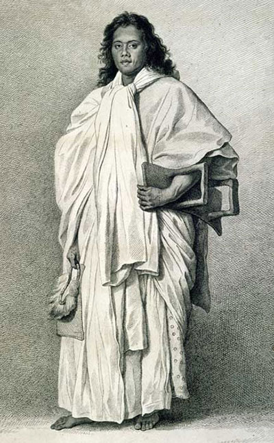 La première est celle de Tupaia, un tahu’a, « celui qui sait », originaire de Ra’iatea et exilé à Tahiti, et qui rejoignit l’équipage de Cook en 1769 à la demande de Joseph Banks. Tupaia était un navigateur confirmé et apporta une aide précieuse pour établir les cartes de Polynésie.