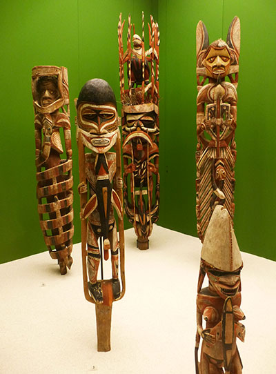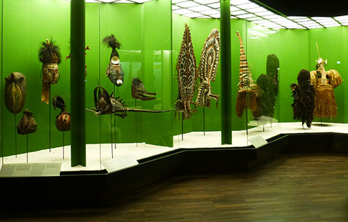 Regina Knapp qui nous a guidés dans les collections Oceanie n’était pas une simple guide mais une anthropologiste allemande née en Papouasie, intelligente et passionnante. Elle nous emmena notamment au coeur des traditions de Nouvelle-Irlande avec pour support les incroyables vitrines du musée.