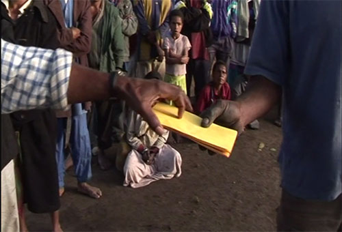 Il ne s’agit pas d’une fiction mais d’un véritable mariage selon la tradition : se mettent en place les systèmes de compensation matrimoniale où les billets de banque rejoignent les cauris et autres coquillages…