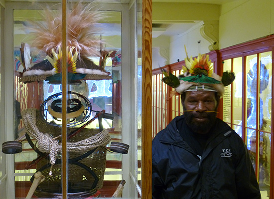 Lors de notre rencontre la semaine dernière avec Sebastien Minchin et George Nuku au Museum de Rouen, nous avons eu la chance de faire la connaissance de Mundiya Kepanga et de Marc Dozier. Plein d’humour et très observateur, Mundiya, un Huli des Hautes-Terres de Nouvelle Guinée, porte un regard évidemment décentré sur nos sociétés et bien sûr plein de bon sens !
