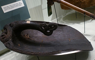 Photos 5 et 6 : Ecope de pirogue © Pitt Rivers Museum 1887.1.381 © de l’auteure 2016 et dessous (site du Pitt Rivers).