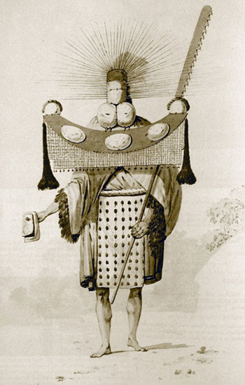Photo 3 : Dessin du chef deuilleur de John Webber © British Library Add. Ms. 15.513.18