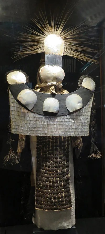 Un petit mot encore sur les costumes de deuilleurs complets des collections publiques : Il existe un superbe heva conservé au British Museum (ci-dessus), mais on manque cruellement de documentation.