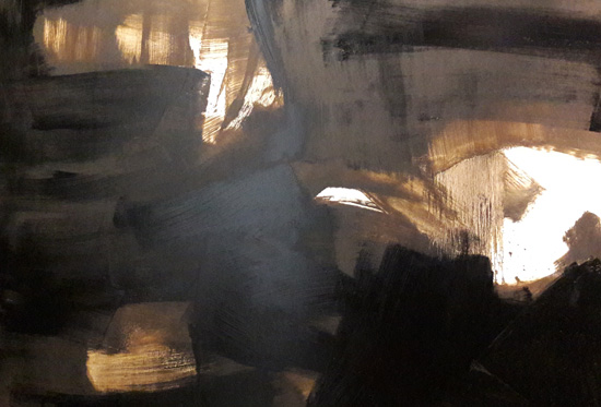 La saturation des sens s’apaisent dans l’entre-deux du clair-obscur dont quelques toiles nous permettent l’accès. Comme si cette lumière paradoxale donnait sens à ces rythmes parfois effrénés de la vie humaine et ouvrait vers un espace originel qui permet le surgissement de la Réalité.