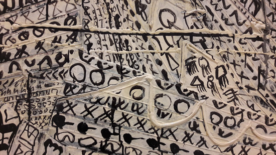 Photo 3, 4 et 5 de l’auteure, resp. oeuvres de Shiraga Kazuo, Shuji Mukai et Pierre Soulages au Musée Soulages