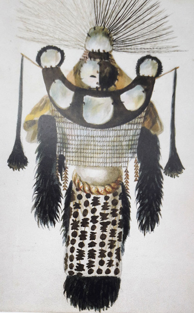 À partir de cette vente, on perd la trace de la robe… ses éléments ont-ils été dispersés dans plusieurs collections ? Il semble que Richard Cuming ait possédé certaines parties de la composition. Dans les années 1940, beaucoup d’artefacts du Cuming museum furent acquis par K. A Webster et ceux-ci furent les objets d’échanges avec J. Hooper. À la mort de ce dernier, il semble que le musée de Tahiti et des îles acquit des éléments du costume, mais la trace de la totalité est perdue.