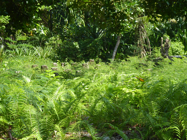 Dans la conversation, et cela sera confirmé le lendemain lors d’une balade sur ce petit ilôt, il est clair que le souvenir de Queen Emma reste vivace dans les mémoires. C’était une grande femme, me dit-on, qui a fait du bien pour la région, comprendre surtout aux Tolaï qui lui obéissaient, l’ethnie dominante de cette région, mais qui lui ont pourtant cédé de nombreuses terres ! Pour preuve de son intérêt pour Mioko, on m’emmène voir les ruines de sa maison dans l’île, quelques pierres, une « piscine », des marches d’escalier ? … C’est plausible, Emma Forsayth devenue Emma Farrell a bien séjourné ici, à son arrivée en 1878.