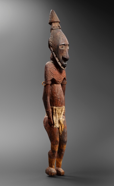Photo 3 : Figure d’ancêtre, kandimbong. Lacs Watam ou Murik. Bois, fibre, tapa, coquillages et pigments. 121,5 cm. Frau Zimmer, Munich. Photo :© Hughes Dubois, Bruxelles / Paris.