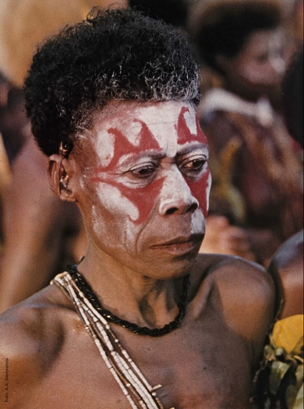 Autrefois, les femmes n’avaient pas le droit de voir ces masques. Il est resté de cette époque l’habitude d’une belle ornementation du visage de celles-ci rappelant les caractéristiques du masque.