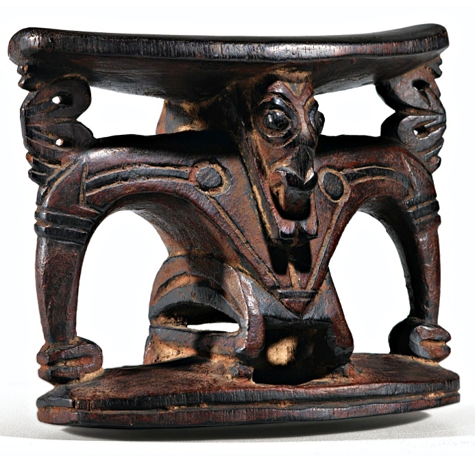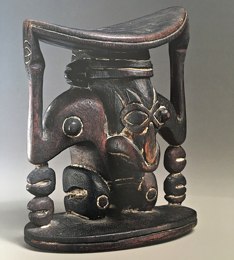 L’anthropologue hongrois Lajos Biró a précisément collecté à la fin du XIXème siècle des objets de la région du Golfe Huon pour le Néprajzi Muzeum de Budapest, dont les appuie-nuques ci-dessous (Jolika Collection ou ex-Jolika Collection).