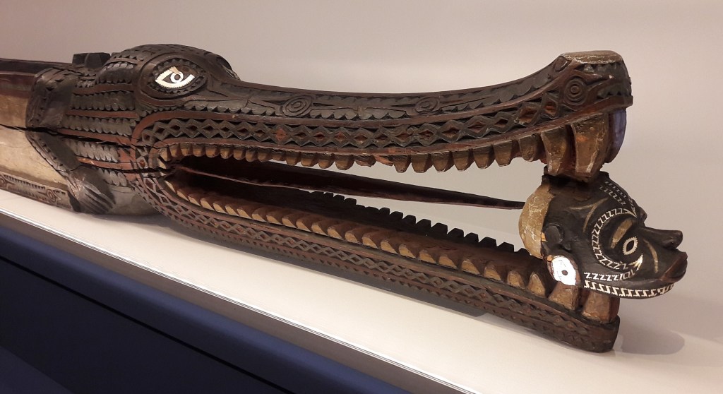 Lors de la grande exposition Oceania qui s’est tenue Londres en 2018, on pouvait admirer l’un des plus imposants objets rapportés par Davis de Roviana : une grande auge de festin de près de 7 mètres de long et « pillée » au village de Kalikongu,