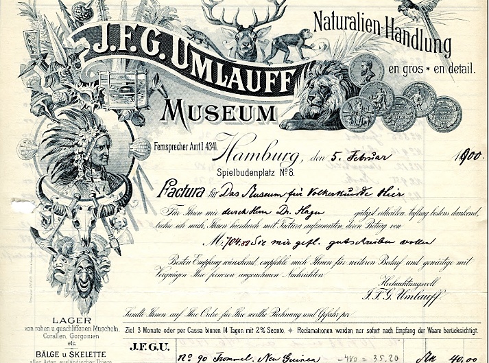 Dans les archives de l’entreprise basée à Hambourg, J.F. G. Umlauff, qui figurait alors parmi les plus importants revendeurs d’objets ethnographiques et d’histoire naturelle en Europe, Alison Clark remarque que celle-ci a acquis en 1894 un nombre « inconnu » d’artefacts de la collection Davis auprès de la maison Gerrard & Sons. Ce n’est qu’au début du XXème siècle qu’une autre série d’achats sera réalisée cette fois-ci par 4 autres musées britanniques et un musée néerlandais, mais aussi par les grands collectionneurs que furent Harry Beasley, James Edge-Partington…