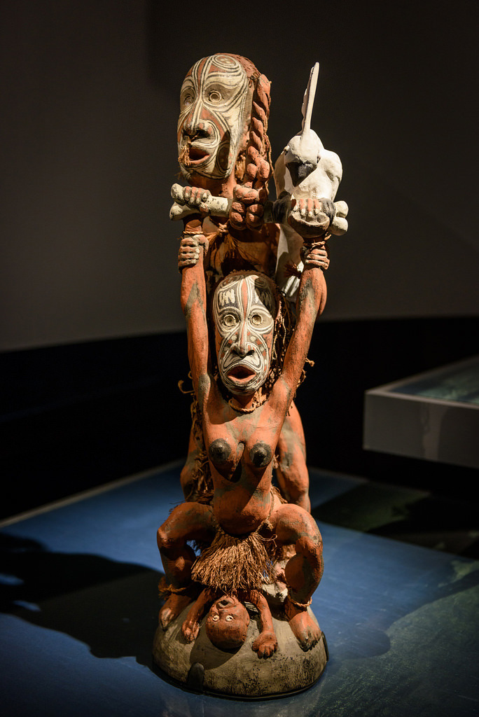 Malheureusement l’esthétique de ces oeuvres ne correspond pas aux critères actuels des collectionneurs d’art classique océanien et elles ne sont généralement pas exposées dans les musées occidentaux. La seule initiative sur le sujet (à ma connaissance) fut l’exposition « In the footprint of the crocodile man » qui s’est tenue entre mars 2016 et février 2017 au musée d’anthropologie de Vancouver sous la direction de Carol E. Mayer et qui a présenté 27 sculptures créées par plus de 20 artistes du Sepik.