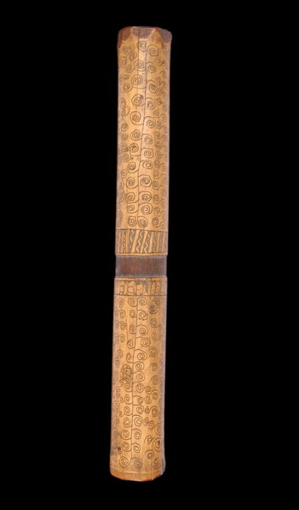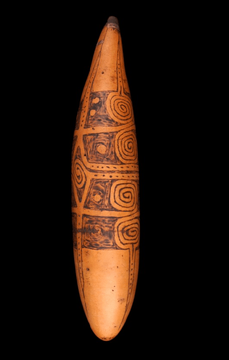 On trouve ainsi au musée du Quai Branly, une collection hétéroclite, avec, outre les armes, des objets décorés de différents motifs probablement inspirés du végétal, et des figures humaines…