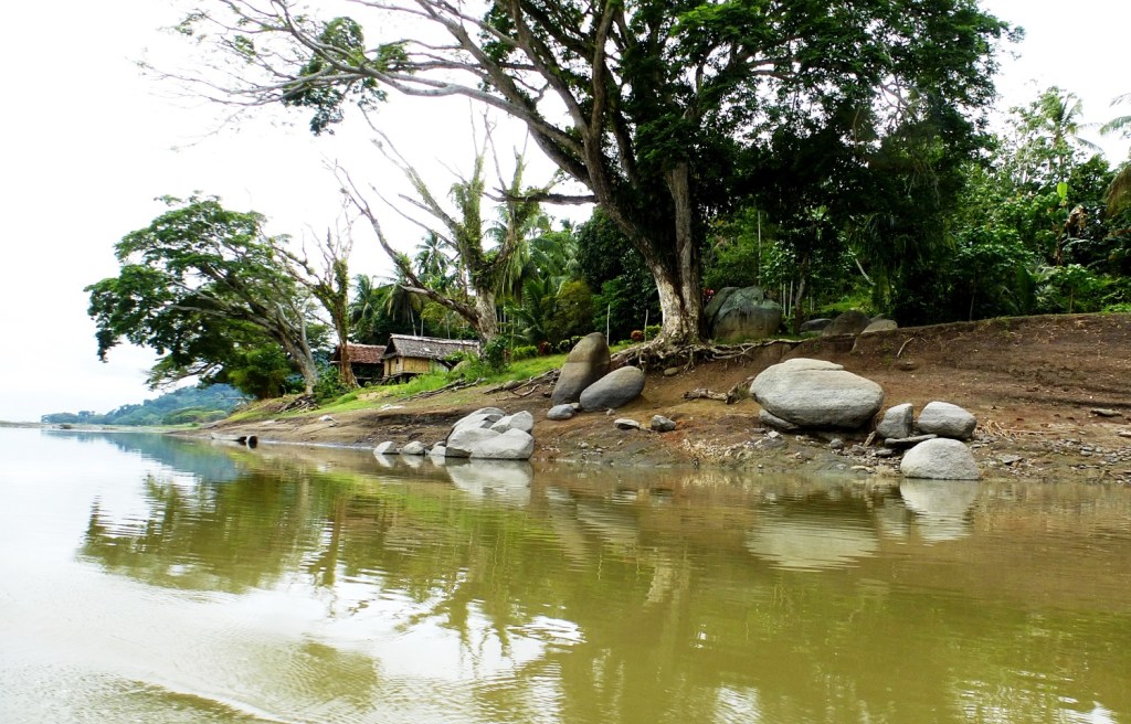 Restant sur le qui-vive, nous passâmes là de longues journées tentant de provoquer les échanges afin d’avoir accès à la rive et n’être pas cantonnés dans notre petit vapeur. Le capitaine était vraiment très (trop) prudent en nous interdisant de mettre pied à terre. Les hommes du village venaient souvent par curiosité, nous fournissant sagou et poissons ; peut-être parfois par sympathie pensais-je alors. Un homme assez âgé était toujours présent lors de ces « contacts ». Je l’avais remarqué, car il me dévisageait fixement, restant immobile sur la berge pendant des heures ; les femmes blanches n’étaient pas si courantes en cette région !