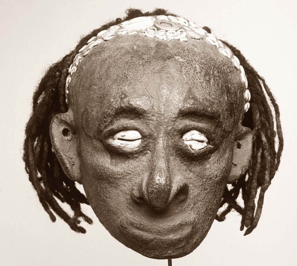 C’est alors que l’homme, à l’agonie, lui indiqua son bilum pour que Luca en sortit son contenu : quelle ne fut pas la surprise de mon compagnon en y découvrant un crâne curieusement surmodelé et soigneusement enveloppé dans des feuilles. Deux yeux ronds, un nez en forme d’ancre, une petite bouche en amande reconstituaient le visage. Surprenantes étaient les multiples décorations de la calotte : des volutes, des tourbillons gravés auxquels s’ajoutaient des coquillages. Maintes questions assaillirent Luca, voulait-il mourir près de ce crâne ? Désirait-il le lui confier ?