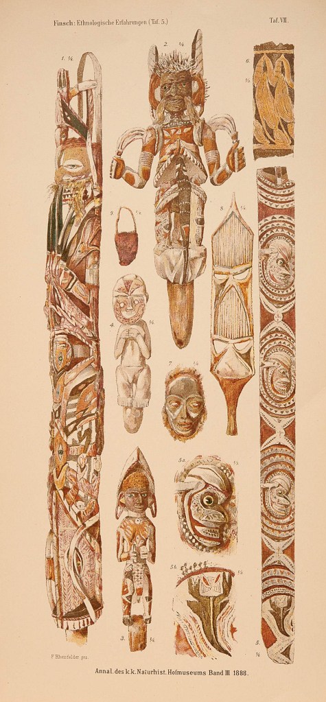 L’occasion avait été trop belle, et Finsch avait beaucoup voyagé de 1879 à 1883 avant de devenir « commissaire impérial ». Malgré cette charge, mais aussi grâce à elle, il avait eu la possibilité de poursuivre ses collectes, devant explorer les côtes de Nouvelle-Bretagne et de Nouvelle-Guinée.