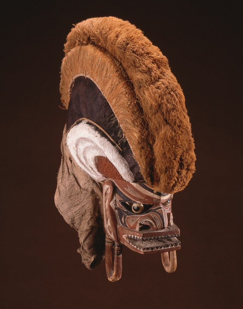 Un autre, semblable à une cage qui devait couvrir la tête avec ses longues oreilles s’appelait Ges. Il s’agissait d’un masque « purificateur », violent dans ses actions pour ramener la vie de la communauté à la normale.