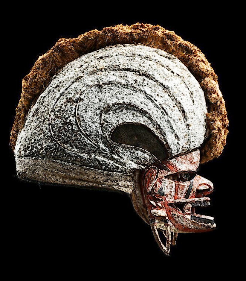 Ce devait être cela dont il s’agissait à Sydney. Des masques comme des têtes humaines, ornées de coquilles, de chaux, d’ocre, de tissu d’écorce, de résine, de rotin, de pigment, et leurs yeux en opercule de turbo ! Certains crânes avaient été enduits de chaux et incrustés de cheveux.