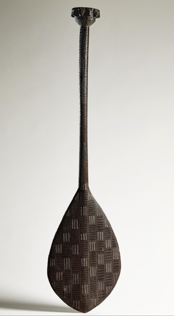 Pour terminer notre rapide tour d’horizon des îles Australes, je vous présente aujourd’hui les « pagaies cérémonielles » en bois finement sculptées.
