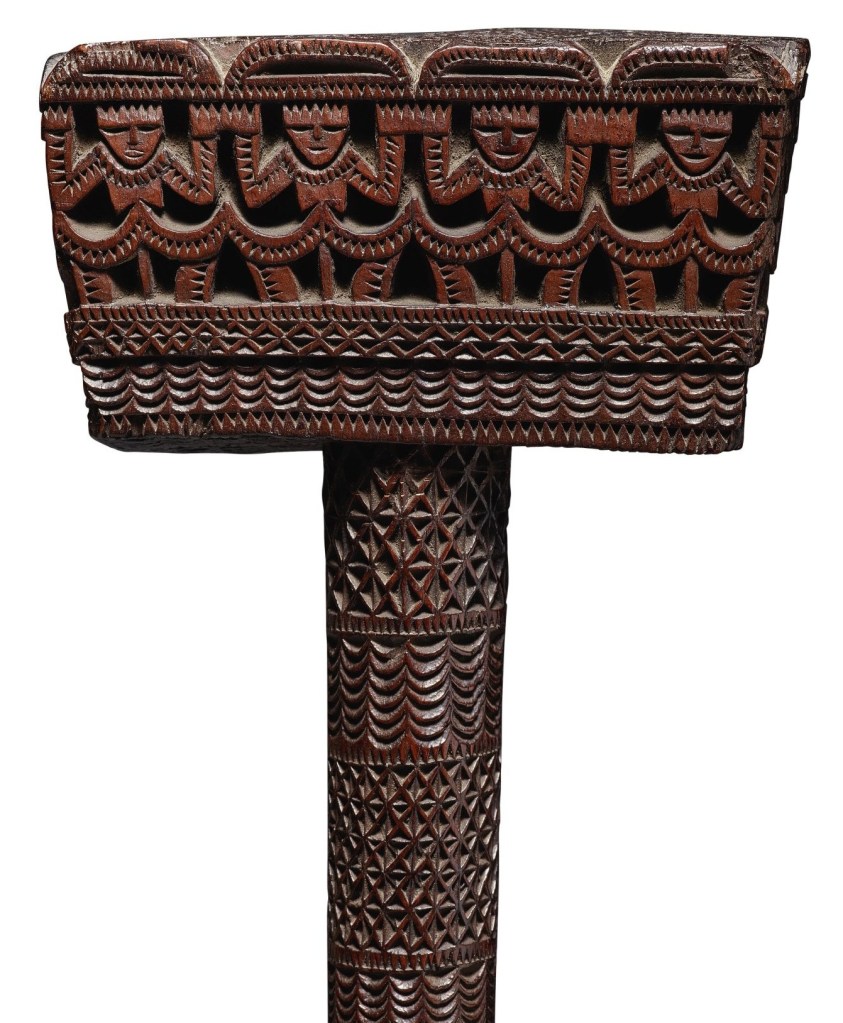 Pagaie © Musée du Quai Branly 71.1920.9.2 et Sommet d’un manche de pagaie © Sotheby’s vente du 4/12/2020