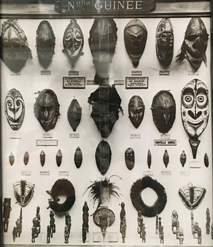 De fait, le masque de Kairiru est entré depuis longtemps dans les collections françaises. Il provient de la collection Roland Bonaparte sur laquelle planent de nombreux mystères. Roland Bonaparte est né à Paris en 1858 et était le petit-neveu de Napoléon Ier. Il s’intéressa d’abord à l’anthropologie et à la géographie, puis il se tourna vers la botanique avec le projet de constituer un herbier gigantesque. Il va notamment présider la Société de Géographie de 1909 à 1924, mais il a fait partie de très nombreuses autres sociétés. À sa mort en 1924, sa fille Marie, princesse de Grèce, légua les millions de spécimens d’histoire naturelle à l’Université de Lyon; sa bibliothèque, cartes et photographies à la Société de géographie (maintenant à la BNF) et bien sûr sa collection d’artefacts au musée de l’Homme.