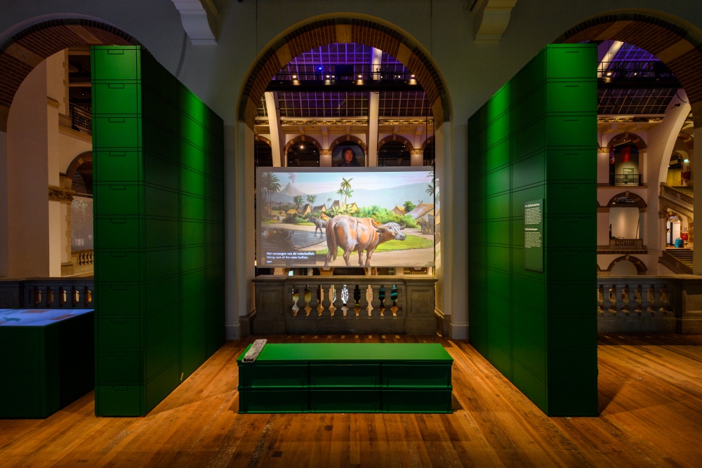 Détail de la salle consacrée à « Richesse d’outre-mer », présenté dans Notre héritage colonial, la nouvelle exposition permanente du Tropenmuseum Amsterdam. Photo © Rick Mandoeng