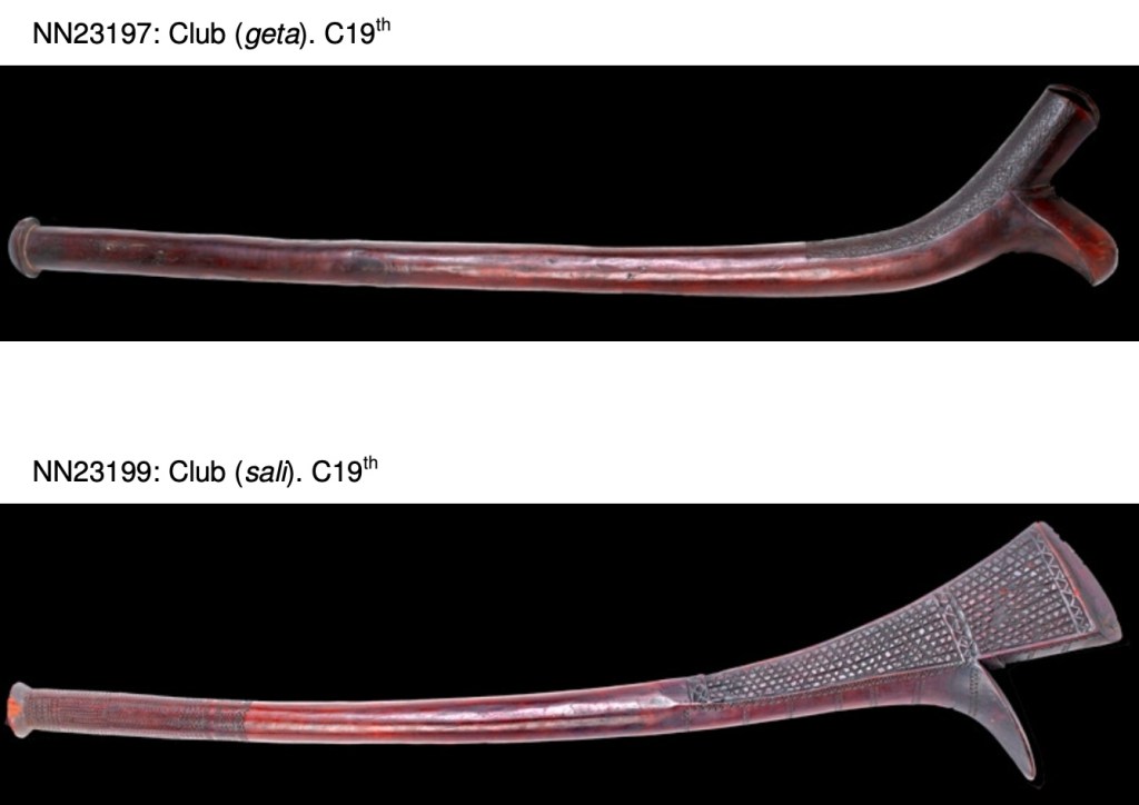 L’auteur s’est concentré sur la collection océanienne, soit une cinquantaine d’objets parmi lesquels armes et outils prédominent. Certains d’entre eux n’ont pas été localisés, d’autres sont dans les réserves du Mueum of London et ne sont pas exposés.