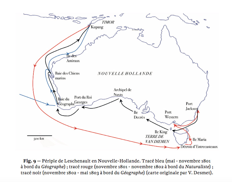 Mais je pense que peu connaissent le nom de Jean-Baptiste Leschenault de la Tour (1773-1825), un voyageur naturaliste de la Nouvelle-Hollande à Java et de l’Inde à la Guyane ! Celui-ci fit notamment partie de l‘expédition Nicolas Baudin, et tout comme ce dernier son nom est injustement tombé dans l’oubli. (Pour en savoir plus , voir l’association des Amis de Nicolas Baudin).