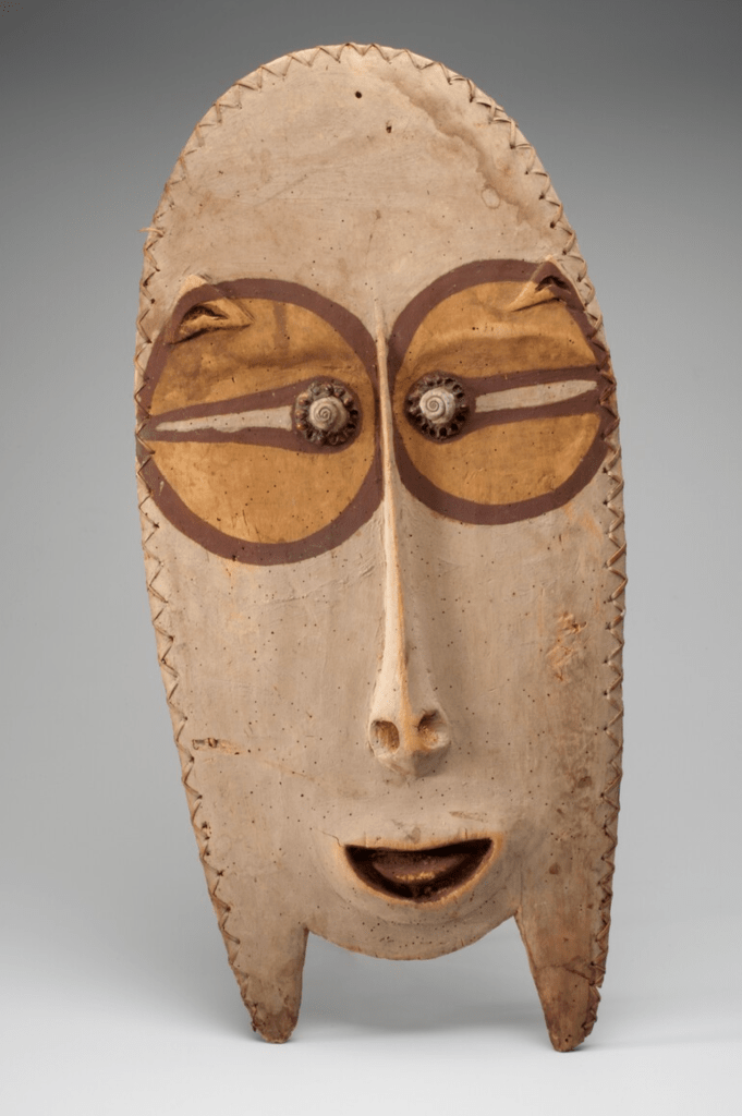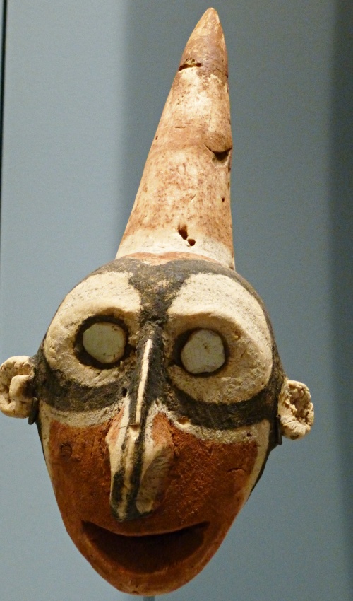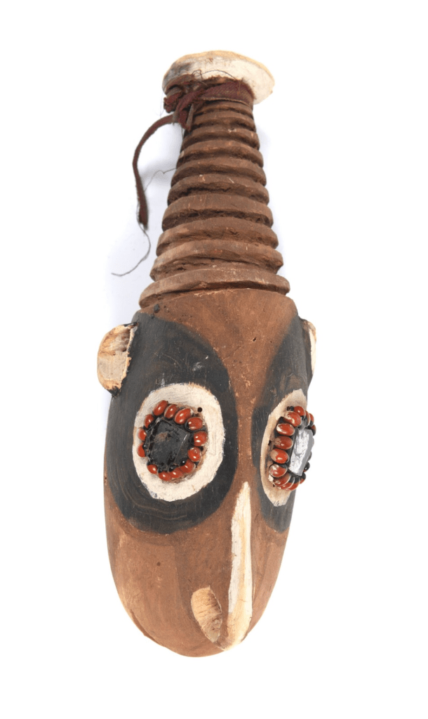La plus ancienne collection dans les musées occidentaux est peut-être celle du Field Museum de Chicago avec les collectes de A.B. Lewis lorsqu’il était sur place au printemps 1912. Ainsi en est-il du masque ci-dessous avec justement la présence d’une petite tête.