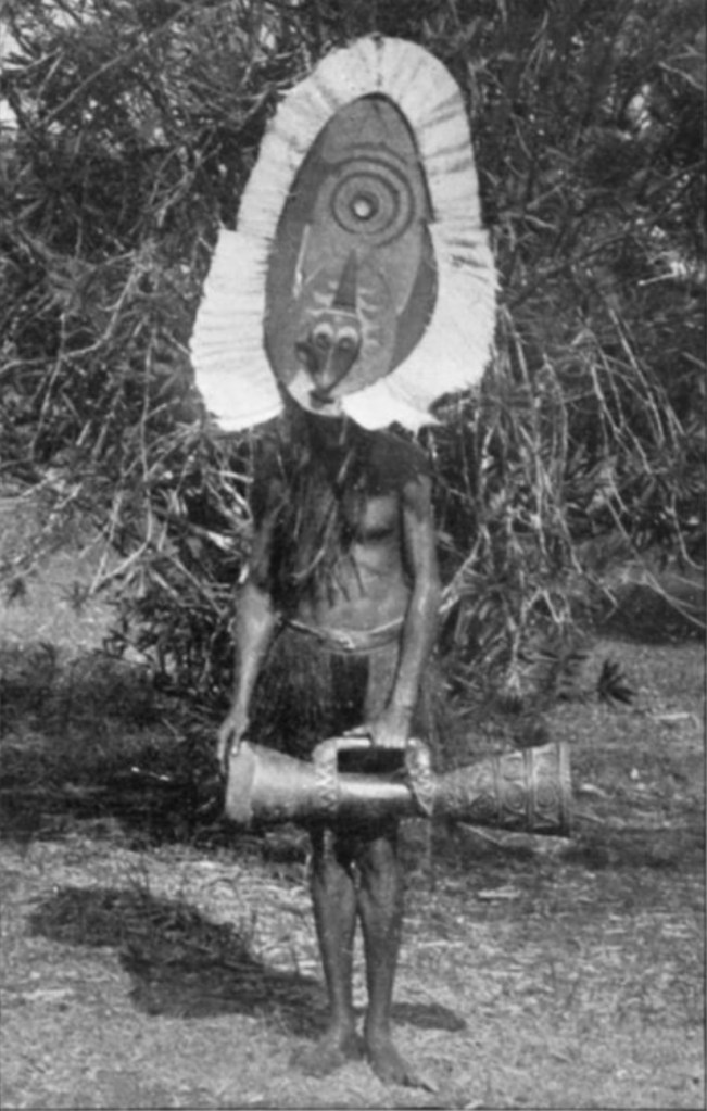 Dans le passé, il existait un cycle cérémoniel centré sur les initiations et qui était en rapport avec des ancêtres fondateurs de clan. C’est dans ce contexte qu’étaient réalisées ces petites têtes en bois appelées ganabi qui ornaient parfois de grands masques de forme ovale. Celles-ci sont généralement ornées d’un chapeau conique (diba) semblable à celui porté par les hommes Gogodala.