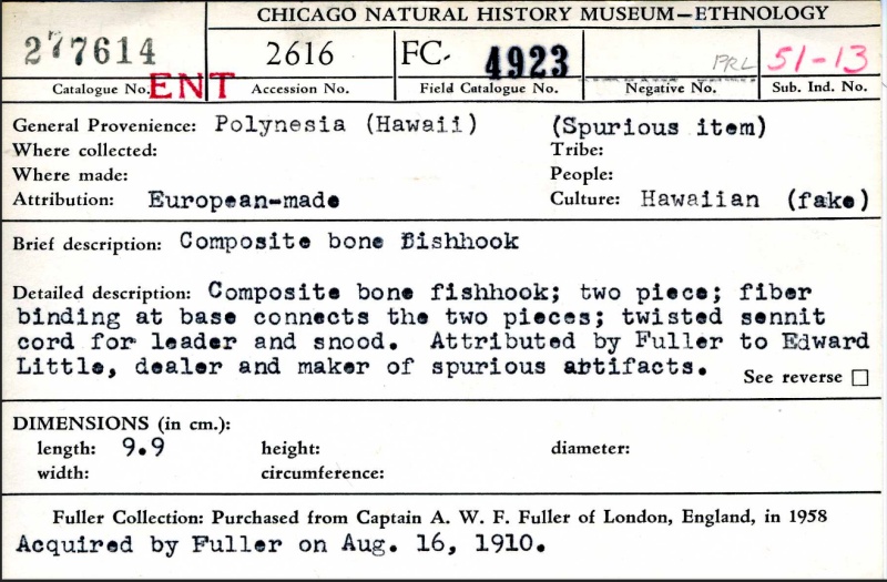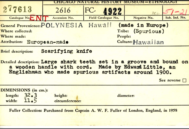 Les faux océaniens de James Edward Little dans la collection Fuller, un article de Patrick O’Reilly dans le Journal des Océanistes 27, année 1970.
