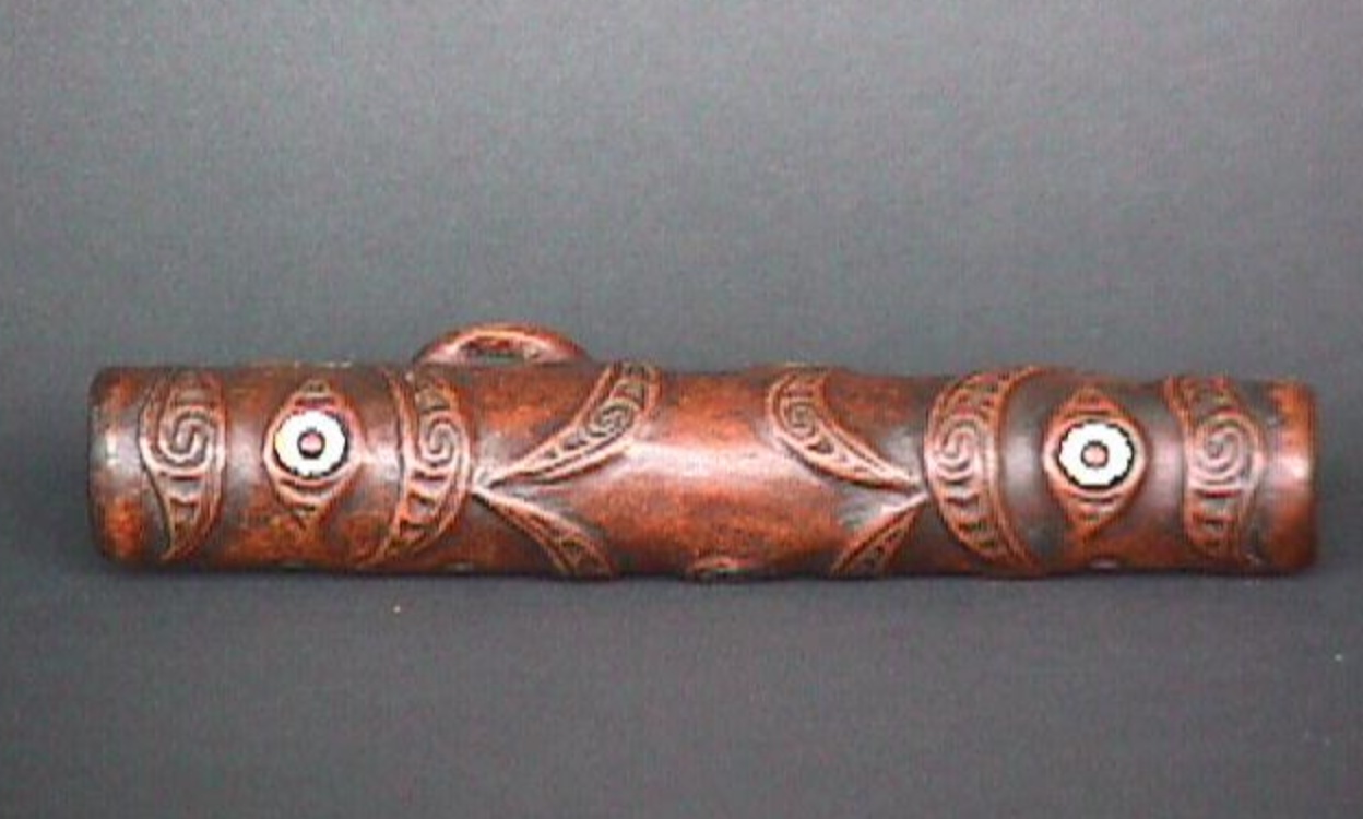 Ailleurs encore on trouvera des objets « Little ». Ainsi, au Pitt Rivers Museum d’Oxford, on relève une curieuse flûte qui n’a rien de maorie… Il s’agit bien d’un flûte en os mais les véritables koauau étaient réalisés à partir d’un os long humain et non avec un os de vache comme c’est le cas ici. Les motifs semblent empruntés à la tradition celte (source : notice du musée). Elle a appartenu à Sir Henry Wellcome, lequel, multimillionnaire dans le domaine de la chimie, a beaucoup acheté et des pièces de sa collection se retrouvent notamment dans plusieurs musées anglais.