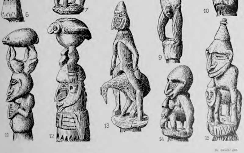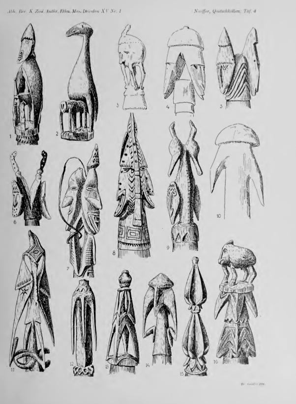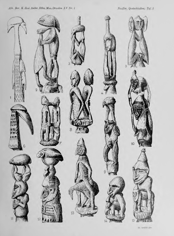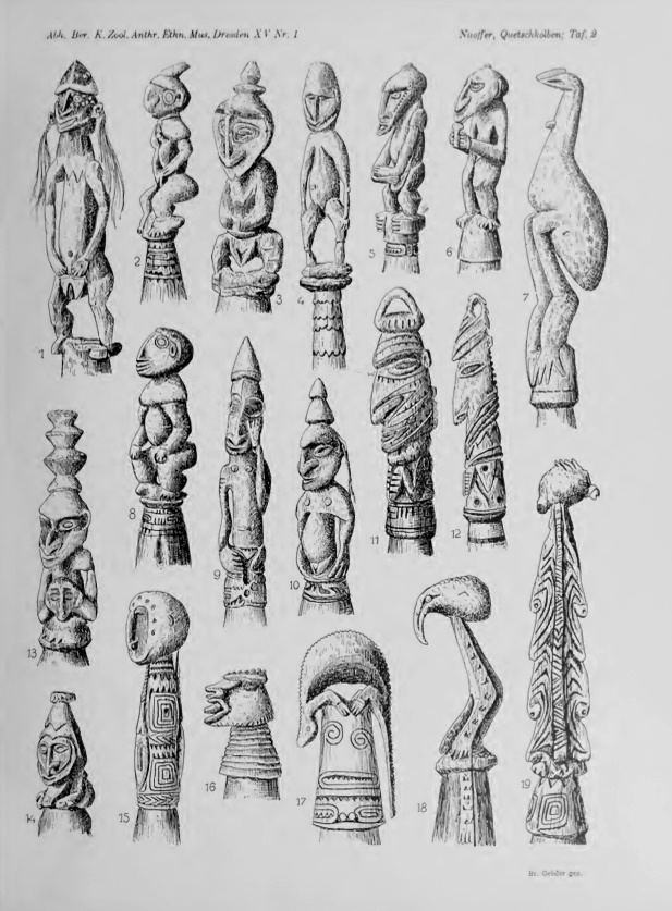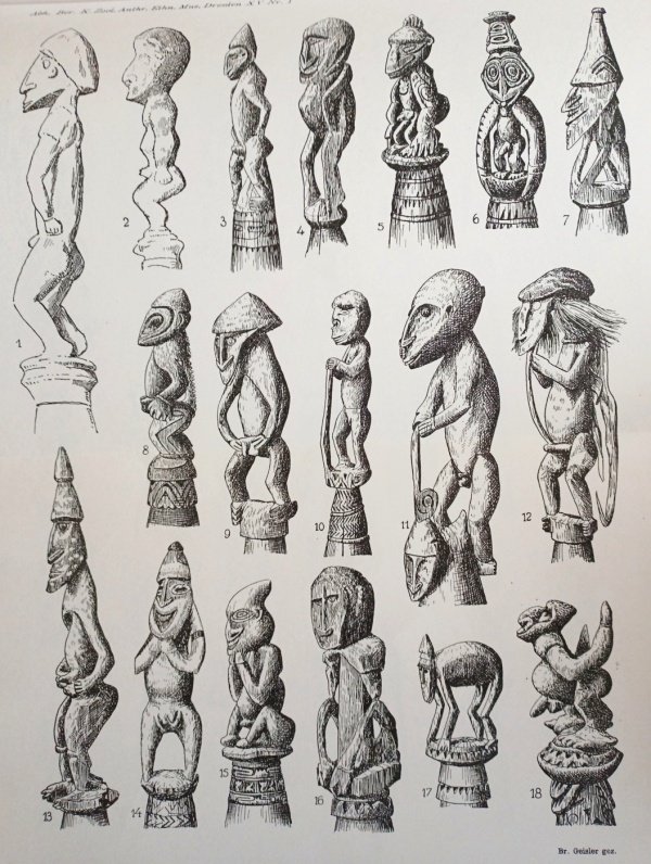 Parmi les nombreux articles, tous aussi passionnants les uns que les autres, je me suis arrêtée sur celui intitulé : « Oskar Nuoffer et les pilons de taro figuratifs collectés par Otto Schlaginhaufen sur la côte nord de la Nouvelle-Guinée en 1909 » écrit par David F. Rosenthal et que l’on retrouve intégralement sur le site de Michael Hamson.